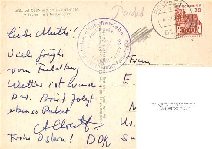 73107145 alte Postkarte Oberreifenberg Fliegeraufnahme postalisch gelaufen Erhaltung siehe scans [KathaD81] KatCode: 11110006434009