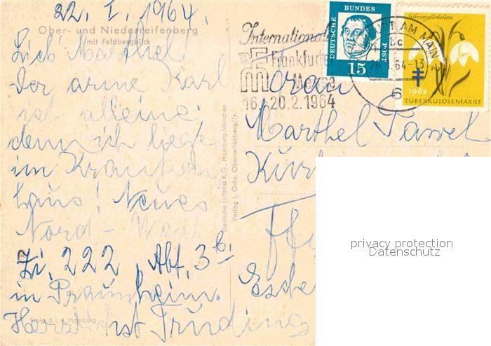 72757636 alte Postkarte Oberreifenberg Fliegeraufnahme mit Niederreifenberg und Feldberg postalisch gelaufen Erhaltung siehe scans [WerneD78] KatCode: 11110006434009