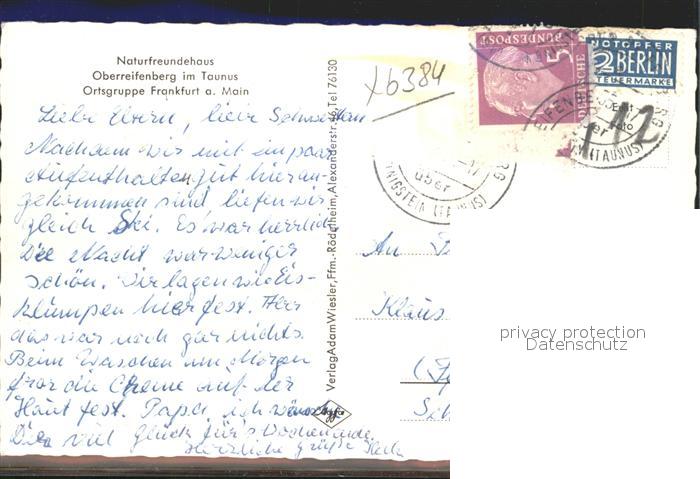 41756840 alte Postkarte Oberreifenberg Gesamtansicht mit Naturfreundehaus Burg postalisch gelaufen KatCode: 11110006434009