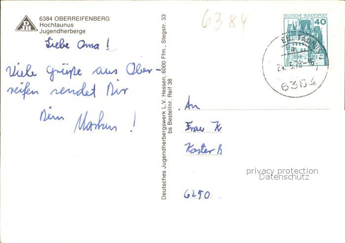 72108625 alte Postkarte Oberreifenberg Hochtaunus Jugendherberge postalisch gelaufen Erhaltung siehe scans KatCode: 11110006434009