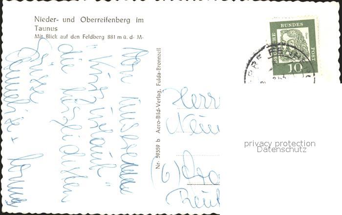 72098709 alte Postkarte Oberreifenberg mit Niederreifenberg und Feldberg postalisch gelaufen Erhaltung siehe scans KatCode: 11110006434009