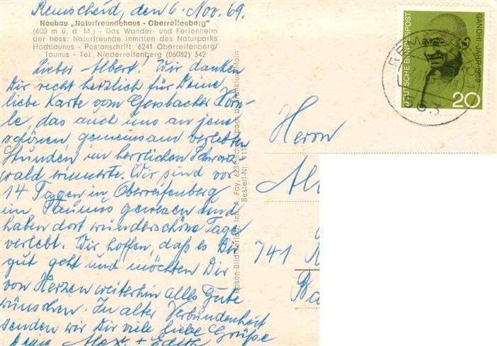 73882168 alte Postkarte Oberreifenberg Naturfreundehaus postalisch gelaufen Erhaltung siehe scans [WerneD78] KatCode: 11110006434009