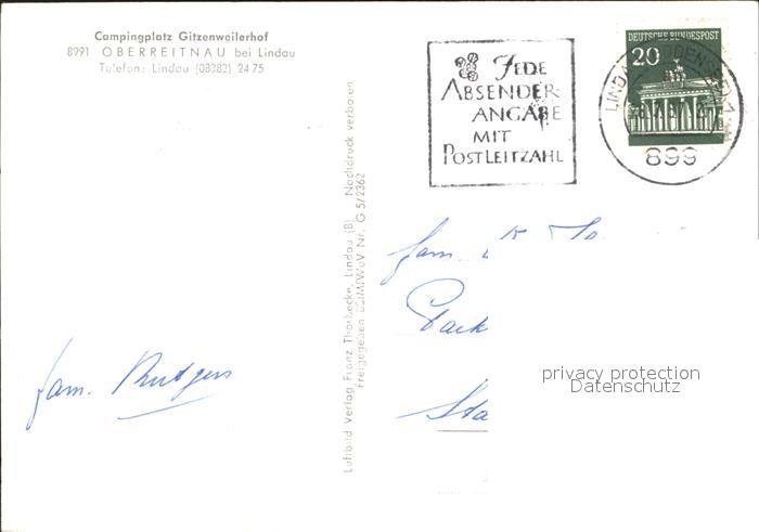 72076086 alte Postkarte Oberreitnau Campingplatz Gitzenweilerhof Fliegeraufnahme postalisch gelaufen Erhaltung siehe scans KatCode: 11110009776116