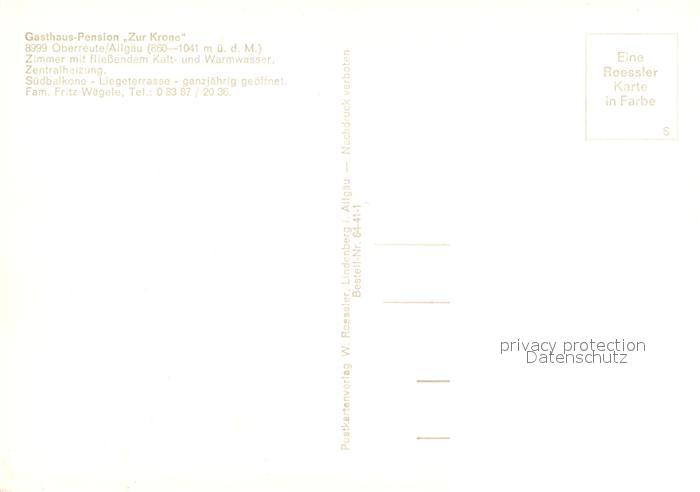 73646387 Oberreute Gasthaus Pension Zur Krone postalisch nicht gelaufen Erhaltung siehe scans [WerneD78] KatCode: 11110009776121