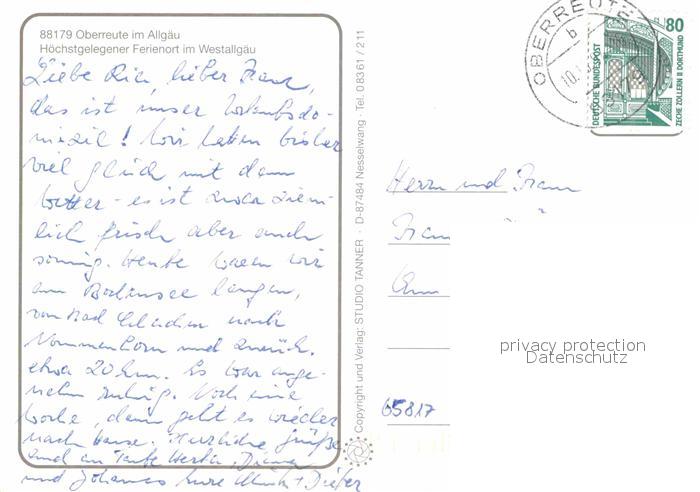 72868742 alte Postkarte Oberreute Hoechstgelegener Ferienort im Westallgaeu Alpenkette Fliegeraufnahme postalisch gelaufen Erhaltung siehe scans [FriedD77] KatCode: 11110009776121
