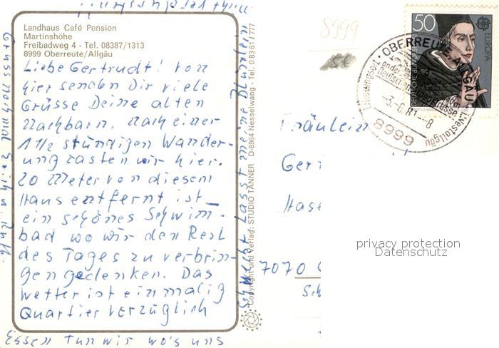 73160709 alte Postkarte Oberreute Landhaus Cafe Pension Martinshoehe postalisch gelaufen Erhaltung siehe scans [KathaD81] KatCode: 11110009776121