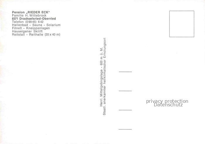 74044073 Oberried Bayerischer Wald Drachselsried Regen Bayern Pension Rieder Eck Reithalle Hallenbad Gastraeume postalisch nicht gelaufen Erhaltung siehe scans [WerneD78] KatCode: 11110009276120