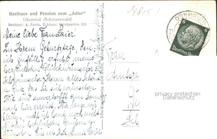 31727978 alte Postkarte Oberried Breisgau Gasthaus zum Adler postalisch gelaufen KatCode: 11110008315084