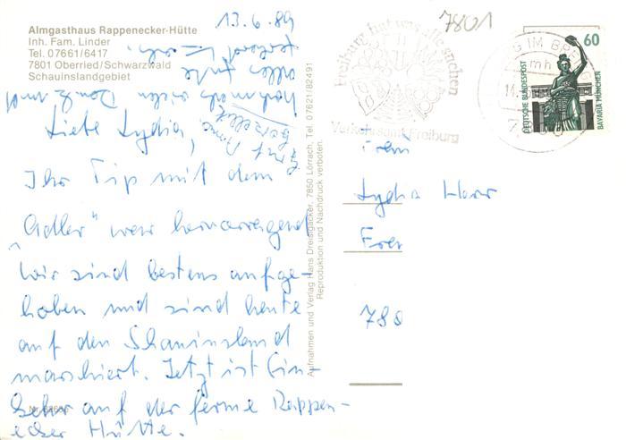 73932114 alte Postkarte Oberried Breisgau Schwarzwald Almgaststaetten im suedlichen Schwarzwald Schauinslandgebiet postalisch gelaufen Erhaltung siehe scans [FriedD77] KatCode: 11110008315084