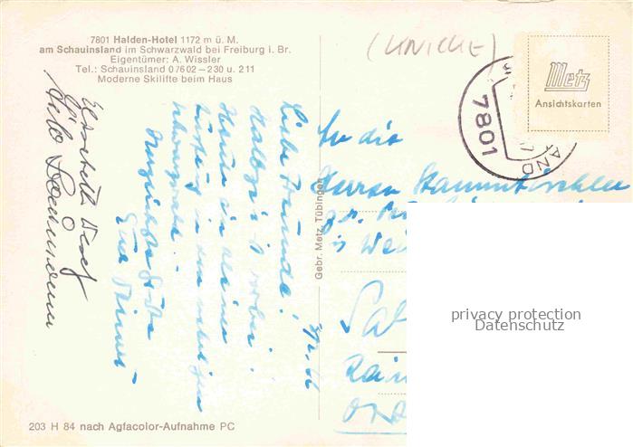 74100700 alte Postkarte Oberried Breisgau Schwarzwald Halden-Hotel am Schauinsland im Winter postalisch gelaufen Erhaltung siehe scans [FriedD77] KatCode: 11110008315084