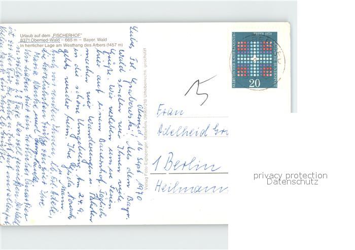 72256911 alte Postkarte Oberried Viechtach Fischerhof postalisch gelaufen Erhaltung siehe scans KatCode: 11110009276120