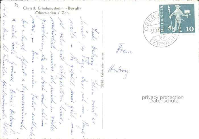 11655738 alte Postkarte Oberrieden ZH Christl Erholungsheim Bergli postalisch gelaufen Erhaltung siehe scans KatCode: 11470260890334