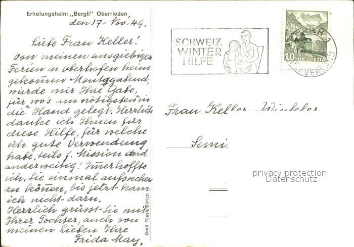 11650638 alte Postkarte Oberrieden ZH Erholungsheim Bergli postalisch gelaufen Erhaltung siehe scans KatCode: 11470260890334