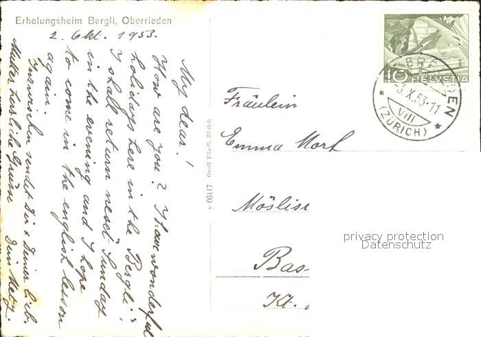 11635543 alte Postkarte Oberrieden ZH Erholungsheim Bergli postalisch gelaufen Erhaltung siehe scans KatCode: 11470260890334