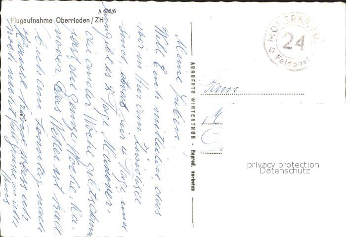 11658212 alte Postkarte Oberrieden ZH Fliegeraufnahme mit Zuerichsee postalisch gelaufen Feldpost Erhaltung siehe scans KatCode: 11470260890334