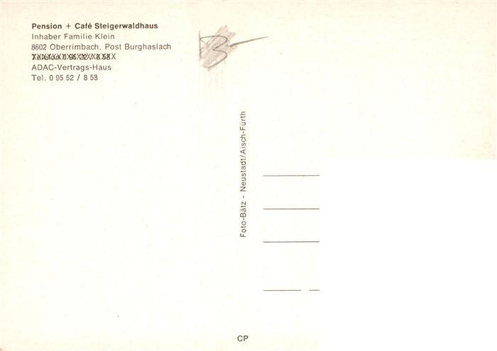 73915248 Oberrimbach Burghaslach Pension Cafe Steigerwaldhaus postalisch nicht gelaufen Erhaltung siehe scans [FriedD77] KatCode: 11110009575116