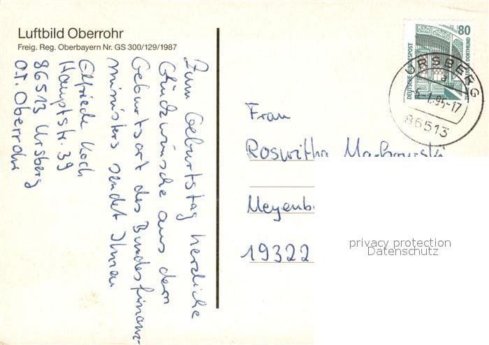 73643995 alte Postkarte Oberrohr Fliegeraufnahme postalisch gelaufen Erhaltung siehe scans [WerneD78] KatCode: 11110009774116