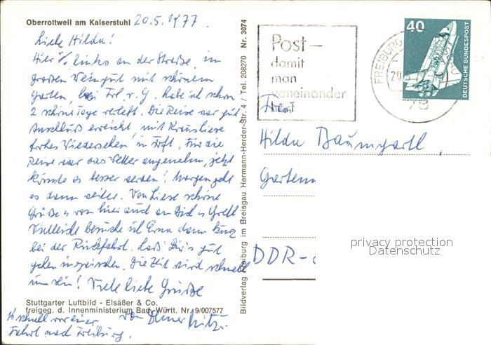 72416957 alte Postkarte Oberrotweil am Kaiserstuhl Luftbild postalisch gelaufen Erhaltung siehe scans KatCode: 11110008315133