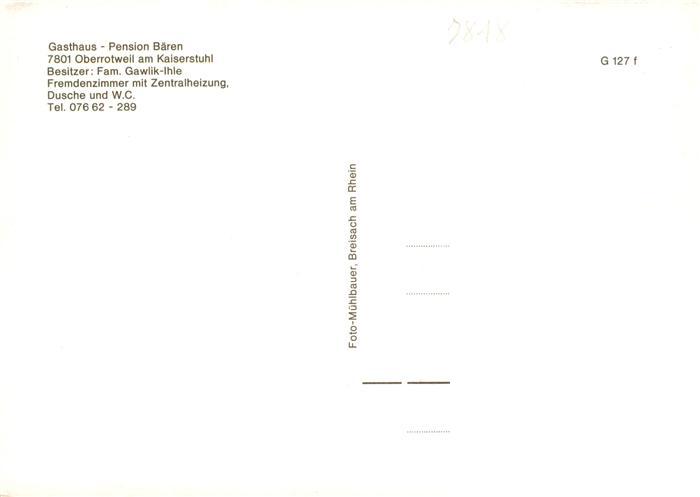 73929110 Oberrotweil Gasthaus Baeren Gaststube postalisch nicht gelaufen Erhaltung siehe scans [WerneD78] KatCode: 11110008315133