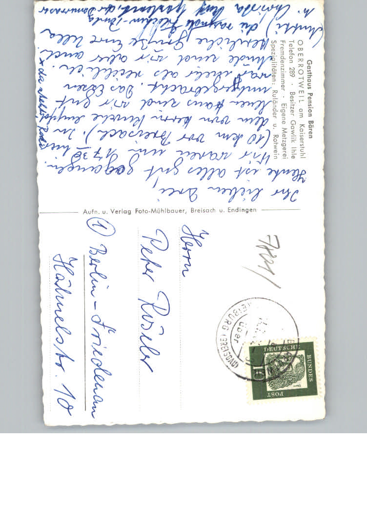 31152683 Oberrotweil Gasthaus Pension Baeren postalisch nicht gelaufen KatCode: 11110008315133