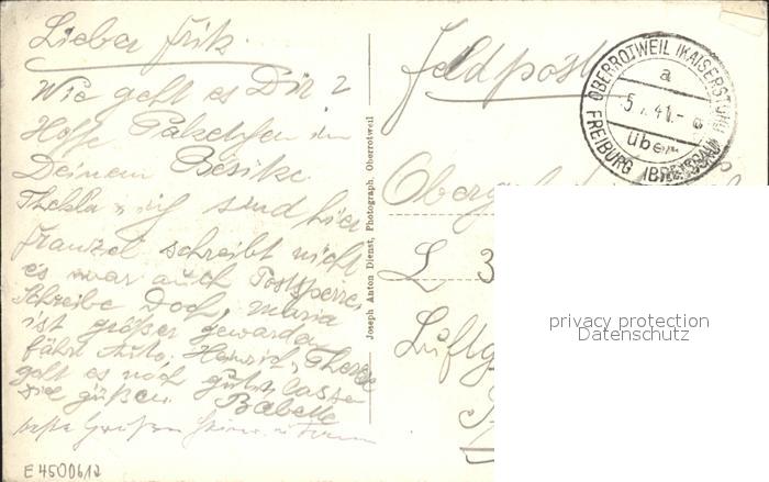 32211168 alte Postkarte Oberrotweil Kaufhaus Dienst Teilansicht postalisch gelaufen Feldpost Erhaltung siehe scans KatCode: 11110008315133