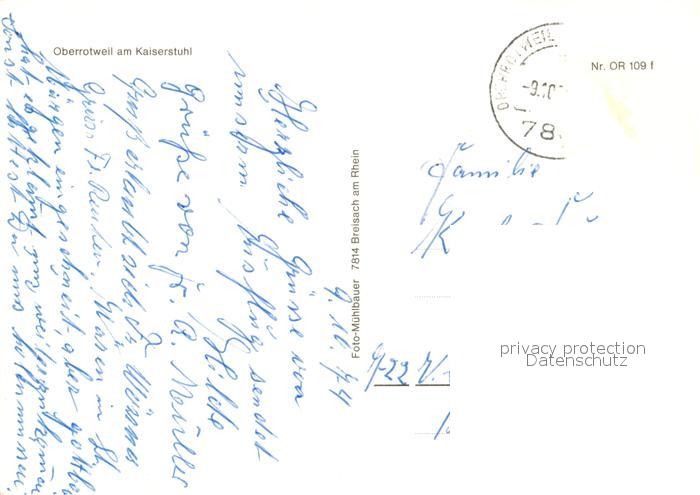 73195684 alte Postkarte Oberrotweil Panorama Rebe Monument Altarbild postalisch gelaufen Erhaltung siehe scans [WerneD78] KatCode: 11110008315133