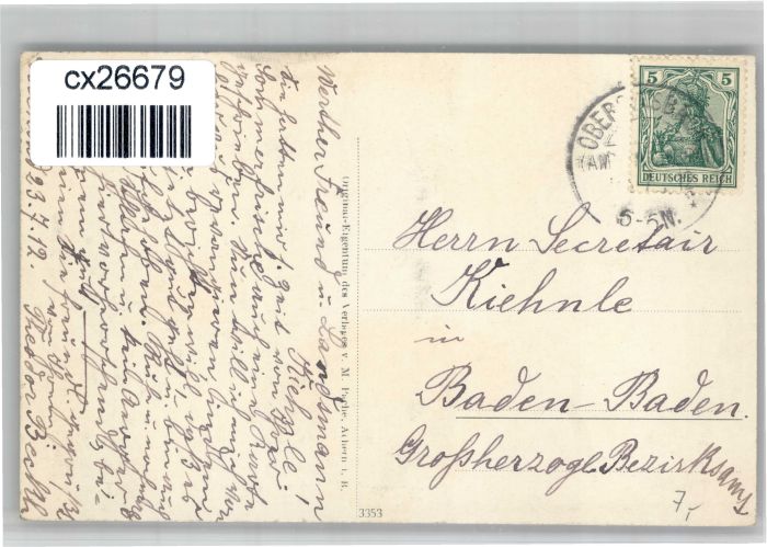 30838722 alte Postkarte Obersasbach Erlenbad Marienheim Wasserheilanstalt postalisch gelaufen KatCode: 11110008317116