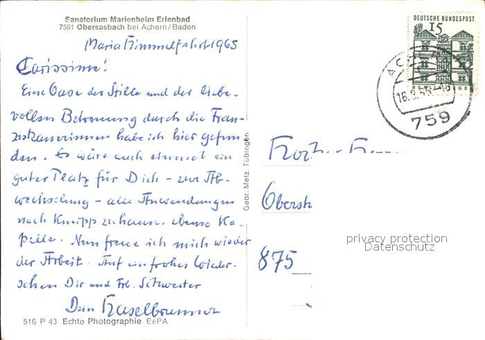 72460095 alte Postkarte Obersasbach Sanatorium Marienheim Erlenbad postalisch gelaufen Erhaltung siehe scans KatCode: 11110008317116