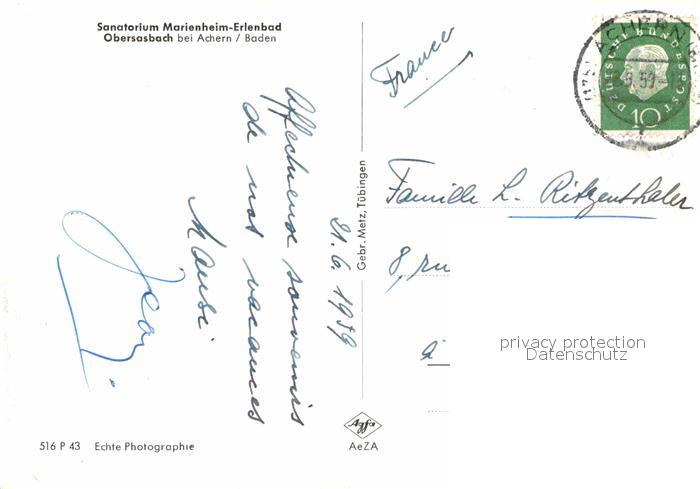 72694073 alte Postkarte Obersasbach Sanatorium Marienheim Erlenbad postalisch gelaufen Erhaltung siehe scans [FriedD77] KatCode: 11110008317116