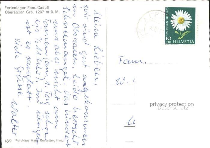 11649173 alte Postkarte Obersaxen GR Ferienlager Fam. Caduff postalisch gelaufen KatCode: 11470100355470