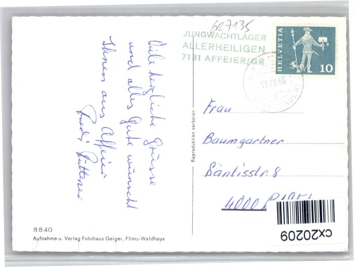 10738086 alte Postkarte Obersaxen GR Meierhof postalisch gelaufen KatCode: 11470100355470