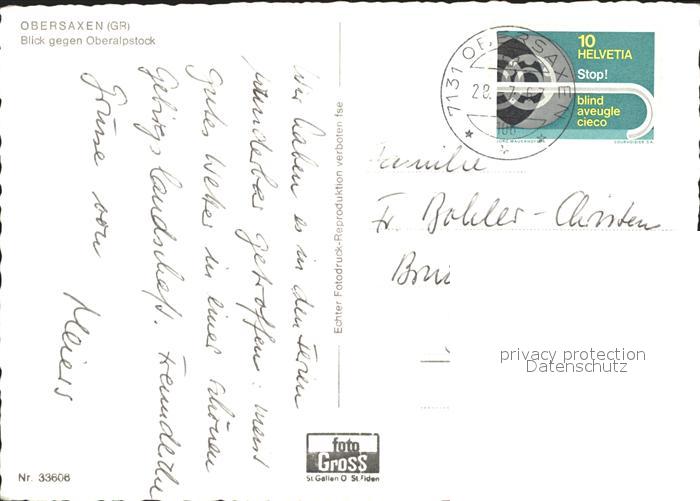 11645269 alte Postkarte Obersaxen GR Oberalpstock postalisch gelaufen Erhaltung siehe scans KatCode: 11470100355470