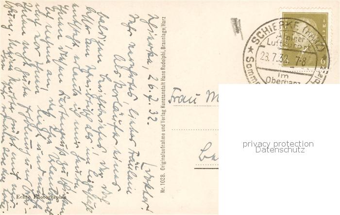 73816951 Oberschierke Harz Panorama postalisch gelaufen Erhaltung siehe scans [WerneD78] alte Postkarte Wern Katcode 11110015085275