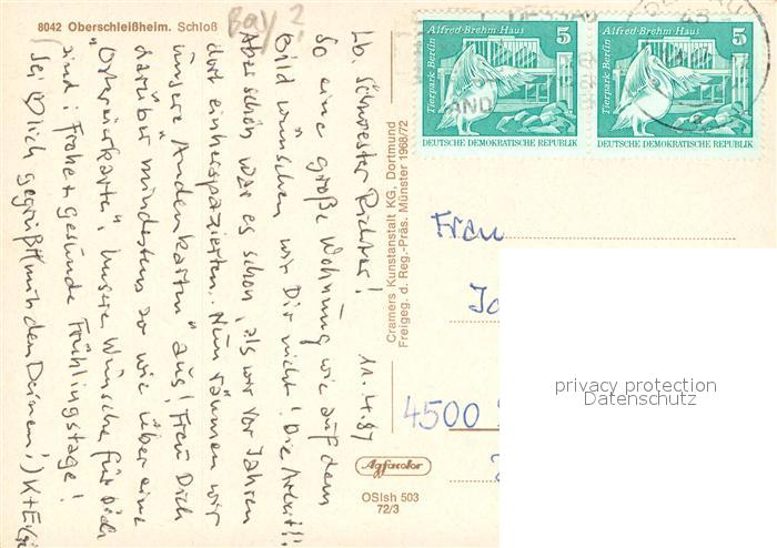 73704412 alte Postkarte Oberschleissheim Schloss postalisch gelaufen Fliegeraufnahme Erhaltung siehe scans [FriedD77] KatCode: 11110009184135