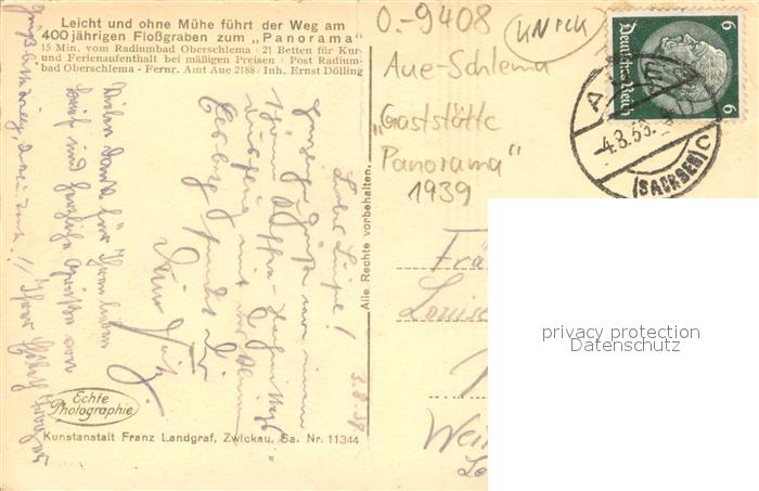73698563 alte Postkarte Oberschlema Erzgebirge Blick vom Glas-Salon Gaststaette Panorama nach Schlema und Schneeberg postalisch gelaufen Erhaltung siehe scans [LiesaD40] KatCode: 11110014191270