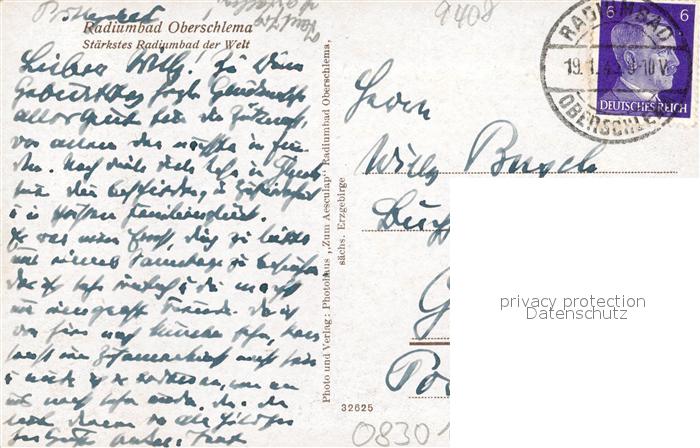 43329727 alte Postkarte Oberschlema Erzgebirge Kurhotel Radiumbad postalisch gelaufen Erhaltung siehe scans [FriedD77] KatCode: 11110014191270