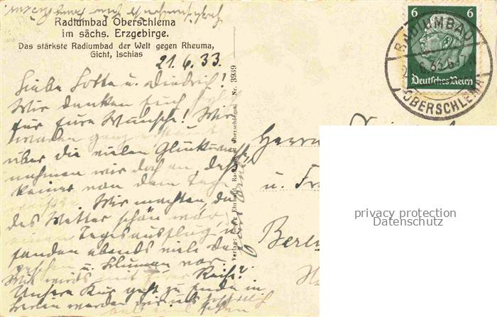 74057330 alte Postkarte Oberschlema Erzgebirge Sachsen Anagen an der Herzbergstrasse postalisch gelaufen Erhaltung siehe scans [WerneD78] KatCode: 11110014191270