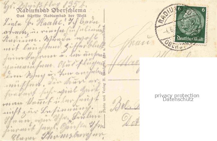74057300 alte Postkarte Oberschlema Erzgebirge Sachsen Panorama Radiumbad postalisch gelaufen Erhaltung siehe scans [WerneD78] KatCode: 11110014191270