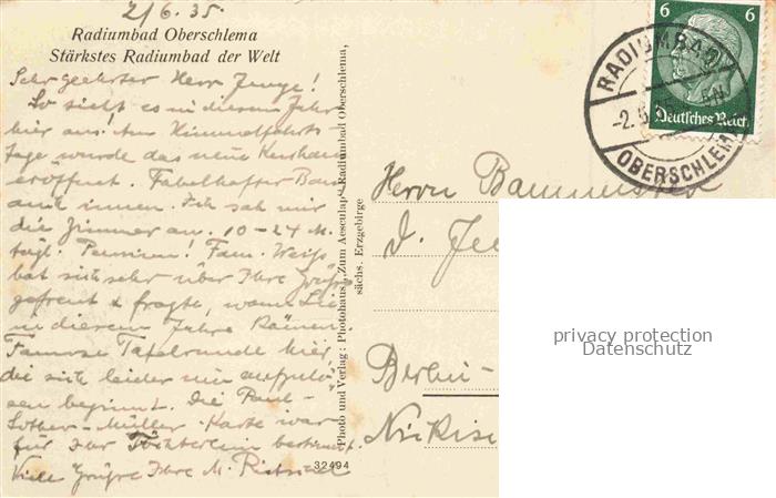 74031158 alte Postkarte Oberschlema Erzgebirge Sachsen Panorama Radiumbad postalisch gelaufen Erhaltung siehe scans [FriedD77] KatCode: 11110014191270