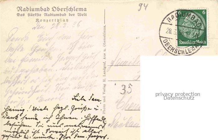 74066207 alte Postkarte Oberschlema Erzgebirge Sachsen Panorama Radiumbad Konzertplatz postalisch gelaufen Erhaltung siehe scans [FriedD77] KatCode: 11110014191270