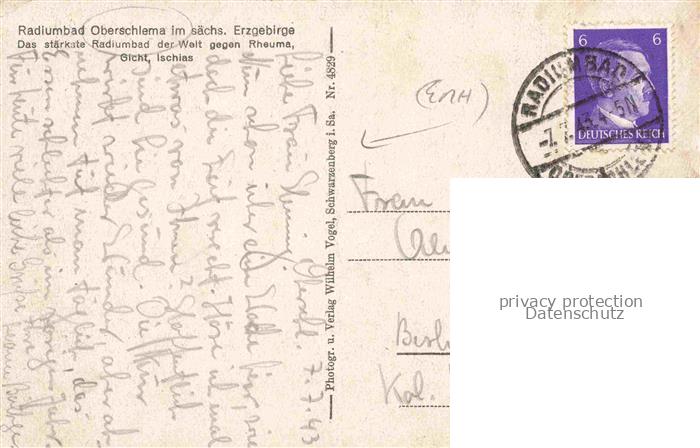 74058138 alte Postkarte Oberschlema Erzgebirge Sachsen Radiumbad Kurhotel mit Blick auf Schneeburg postalisch gelaufen Erhaltung siehe scans [WerneD78] KatCode: 11110014191270