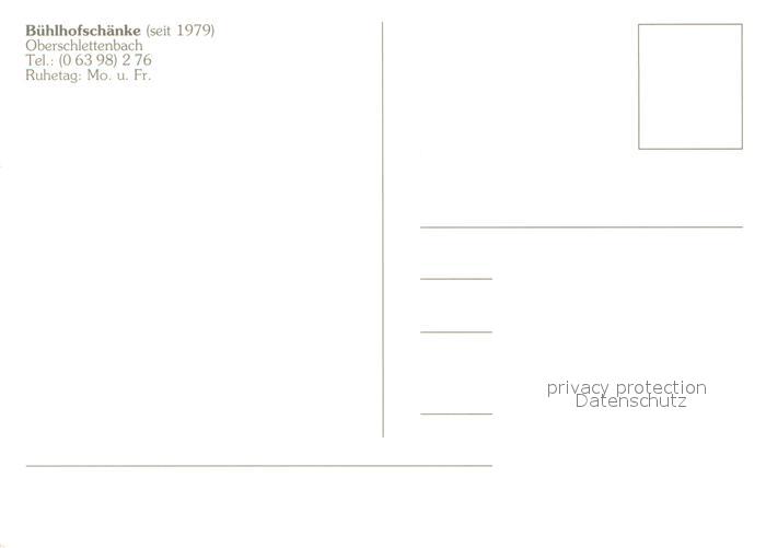 73707641 Oberschlettenbach Buehlhofschaenke postalisch nicht gelaufen Erhaltung siehe scans [WerneD78] KatCode: 11110007337060