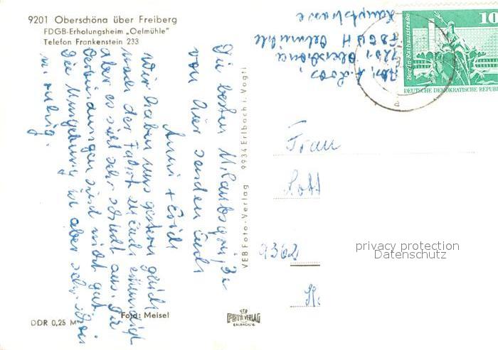 73749771 alte Postkarte Oberschoena Mittelsachsen FDGB Erholungsheim Oelmuehle postalisch gelaufen Erhaltung siehe scans [WerneD78] KatCode: 11110014177330