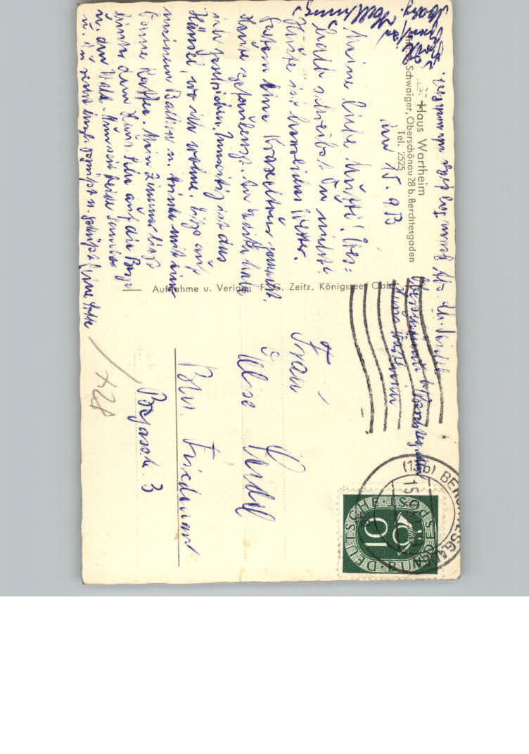 31158763 Oberschoenau Pension Haus Wartheim postalisch nicht gelaufen KatCode: