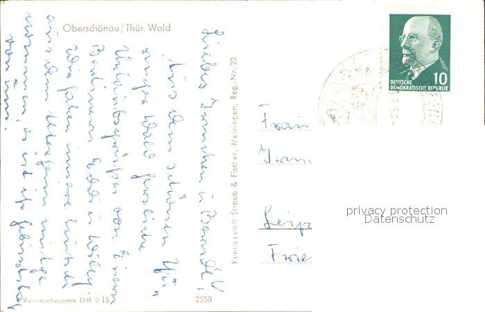 71942498 alte Postkarte Oberschoenau Thueringen postalisch gelaufen Erhaltung siehe scans KatCode: 11110016066051