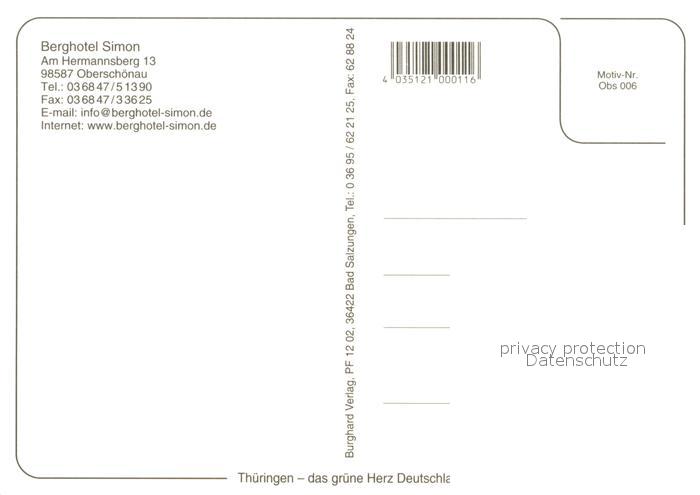73641943 Oberschoenau Thueringen Berghotel Simon Gastraeume Zimmer postalisch nicht gelaufen Erhaltung siehe scans [WerneD78] KatCode: 11110016066051
