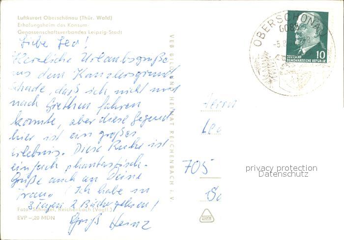 72388110 alte Postkarte Oberschoenau Thueringen Erholungsheim des Konsum postalisch gelaufen Erhaltung siehe scans KatCode: 11110016066051