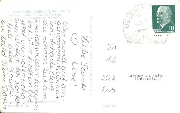 72172166 alte Postkarte Oberschoenau Thueringen Erholungsheim Leipzig Stadt postalisch gelaufen Erhaltung siehe scans KatCode: 11110016066051
