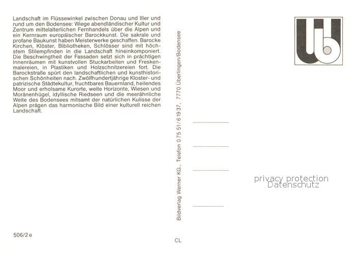 73105763 Oberschwaben Allgaeu Region Barockstrasse Schusseried Waldsee Steinhausen Isny postalisch nicht gelaufen Erhaltung siehe scans [KathaD81] KatCode: 11110009763000