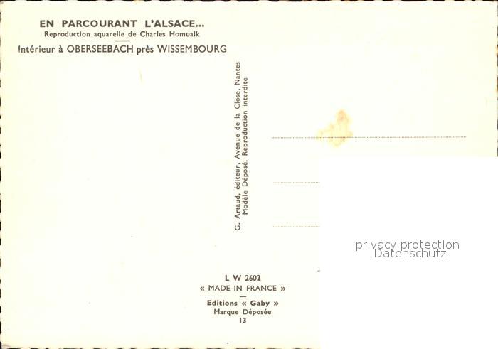 12537850 Oberseebach Bas-Rhin Elsaessische Familie Aquarell Charles Homualk postalisch nicht gelaufen Erhaltung siehe scans [KathaD75 dp141box] KatCode: 11170067867482